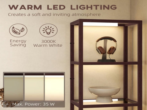 - Weight Capacity: 9 kg (total), 2 kg (each glass shelf), 3 kg (bottom shelf)