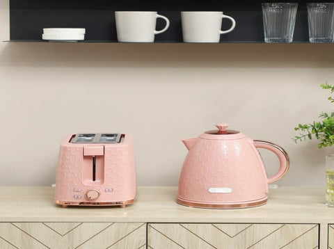 • 1.7L fast boil kettle and matching two-slice toaster. Stylish honeycomb design