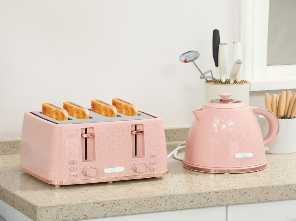 - 1.7L fast boil kettle and matching four-slice toaster. Stylish pebbled design