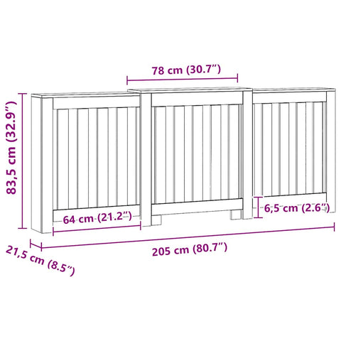 Radiator Cover Artisian Oak 205x21.5x83.5 cm Engineered Wood 852770