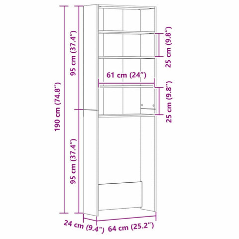 Washing Machine Cabinet Black Oak 64 x 24 x 190 cm 862668