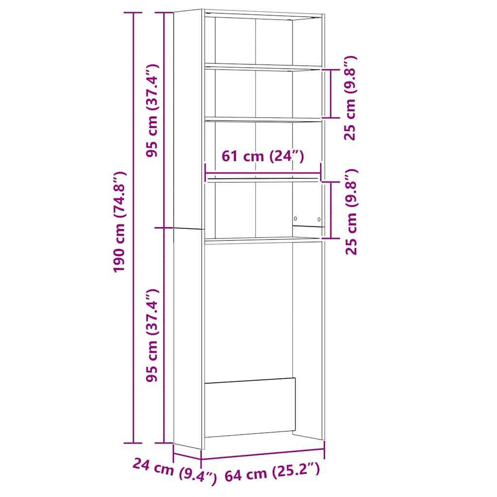 Washing Machine Cabinet Concrete Grey 64x24x190 cm 808408