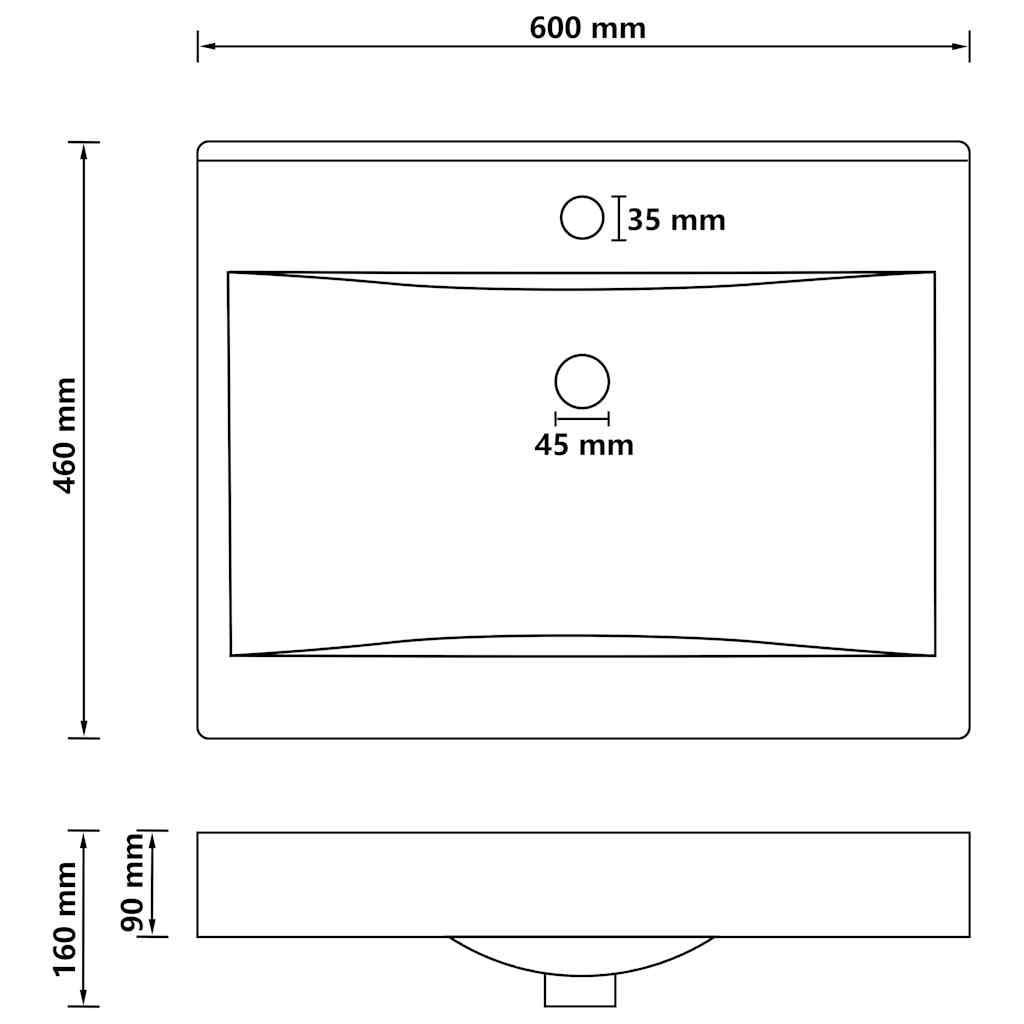 Our rectangular wash basin, made of premium ceramic, is a stylish addition to any bathroom, washroom or powder room. Its matt surface and luxury design bring itself a modern yet elegant design. This artistic ceramic basin is more than just a practical vessel for everyday use. It is an adornment for your living space. This sink can be used in the cosmetic room, garage, kitchen or workplace. It definitely suits any interior style and is quite easy to clean. Additionally, this basin can be used as wall hung basin as well as built-in basin. A faucet hole is equipped to install a tap and an overflow hole is equipped to flow water out when it gets full. The drain hole is 4.5 cm in diameter. Please note: Drain pipe is not included in the delivery. If you want to wall mount this basin, it needs to be supported by wall bolts. Please note: The wall bolts are not included in the delivery.