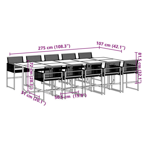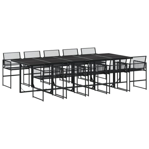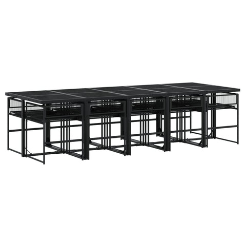 11 Piece Garden Dining Set Black Poly Rattan 3295036