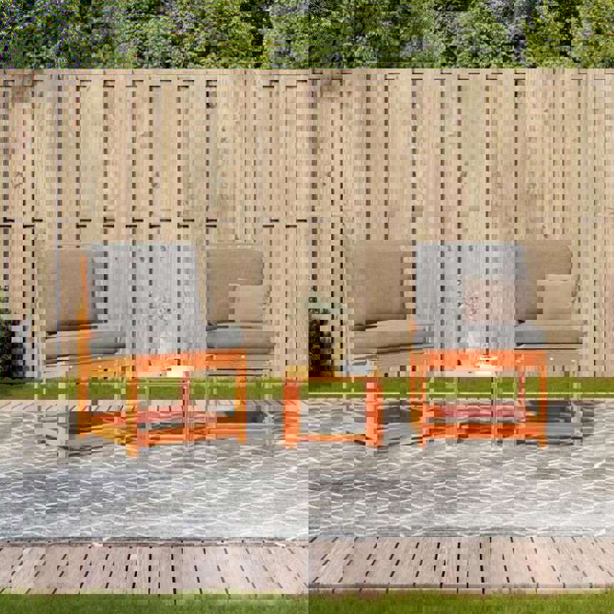 This wooden garden lounge set has an elegant design and is a great choice for relaxing and enjoying in the garden or patio. Solid pine wood: The outdoor lounge set is made of solid pine wood for sturdiness and stability. Solid pine wood is a beautiful natural material. Pine wood has a straight grain, and the knots give the material its signature, rustic look.Comfortable seating experience: Featuring a backrest, the patio lounge set gives you the utmost comfort.Slatted design: The slatted design of the wooden lounge set prevents water accumulation, keeping the seat dry and preventing unnecessary rotting.Wide applications: The garden seating is perfect for any front porch, patio, backyard, lawn, garden, etc. Good to know:To make sure your outdoor furniture stays beautiful, we recommend protecting it with a waterproof cover.