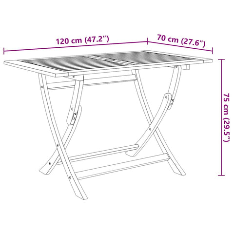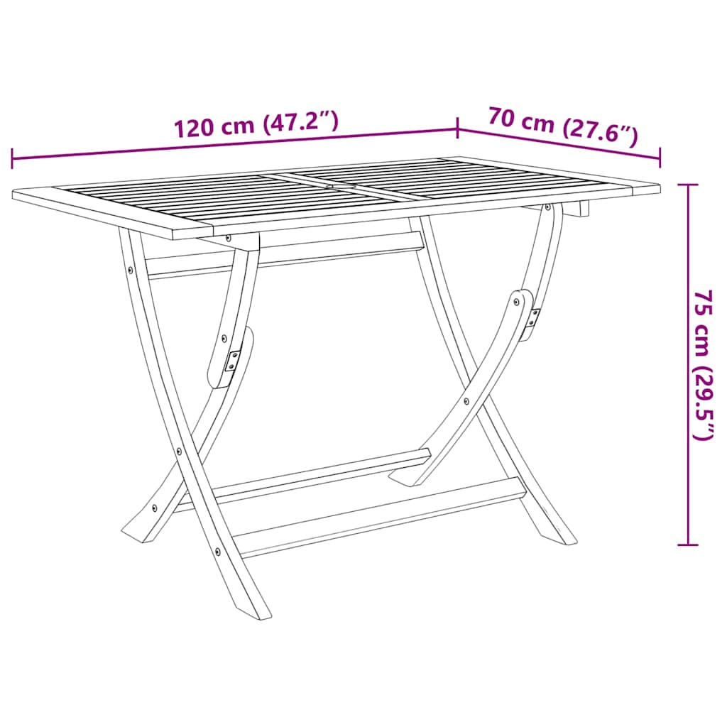 - Table dimensions (folded): 120 x 24 x 105 cm (W x D x H)