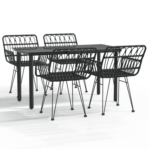 5 Piece Garden Dining Set Black Poly Rattan 3157868