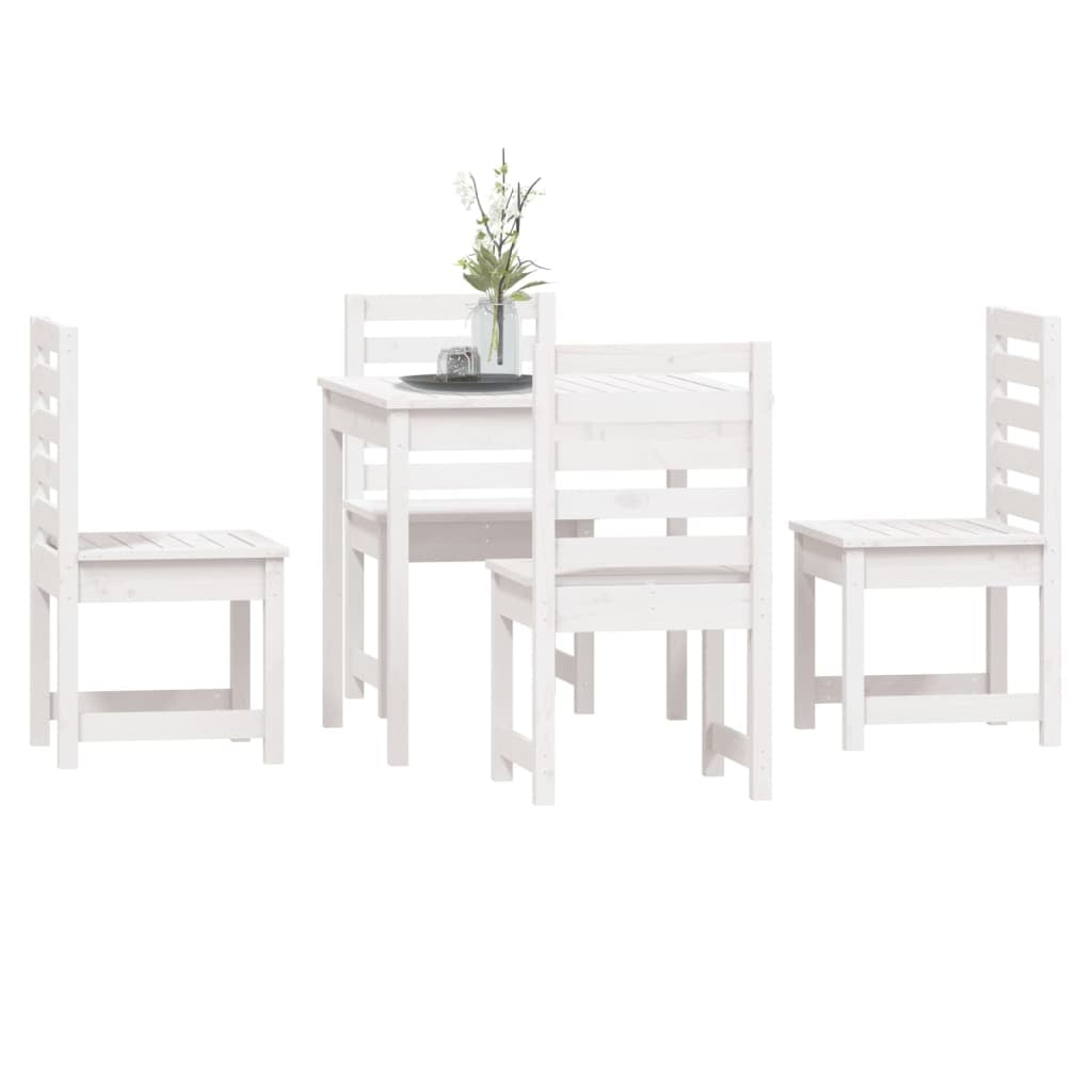 5 Piece Garden Dining Set White Solid Wood Pine 3154678
