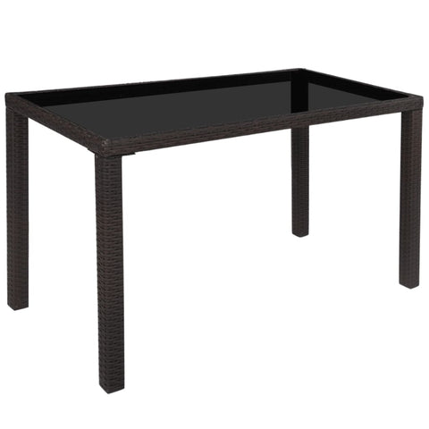 Our stylish rattan garden furniture set will become the focal point of your garden or patio! This rattan dining set, with an elegant design, will be a great choice for al fresco dining or relaxing in the garden. The powder-coated steel frames make the table, chairs and stools strong and sturdy, and thanks to their lightweight constructions, all items are easy to move. Thanks to the weather-resistant and waterproof PE rattan, the dining set is easy to clean. The glass top is also easy to clean with a damp cloth. The thick, soft, foam-filled seat and back cushions are highly comfortable and made of water-repellent polyester. The removable and washable covers are equipped with zips. Delivery includes 1 table, 2 chairs, 2 stools, and 6 cushions. Note: We recommend covering the set in the rain, snow and frost.