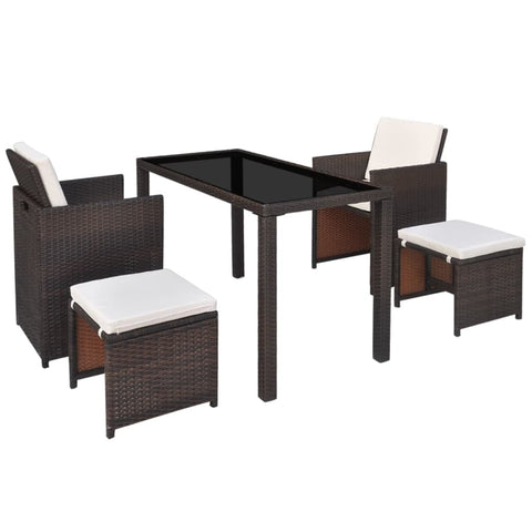 5 Piece Outdoor Dining Set with Cushions Poly Rattan Brown 42600