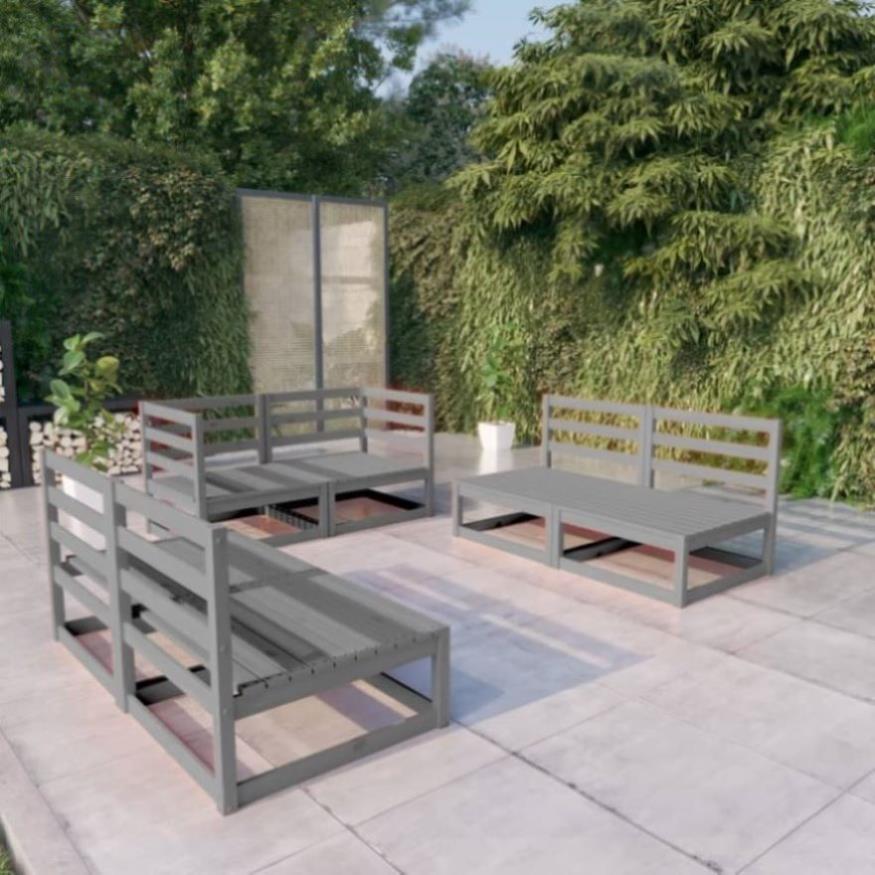 6 Piece Garden Lounge Set Grey Solid Pinewood 3075411