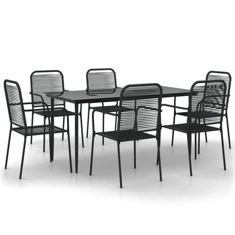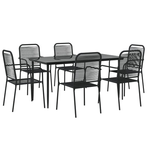 7 Piece Garden Dining Set Black Cotton Rope and Steel 3156541