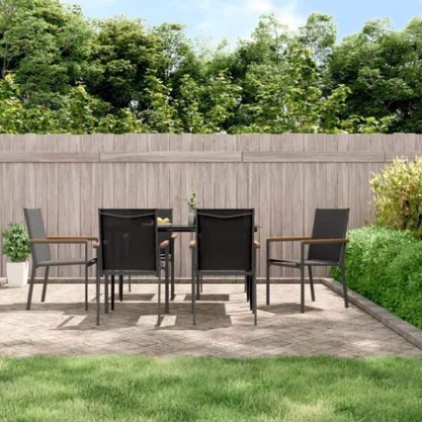 7 Piece Garden Dining Set Black Textilene and Steel 3187036