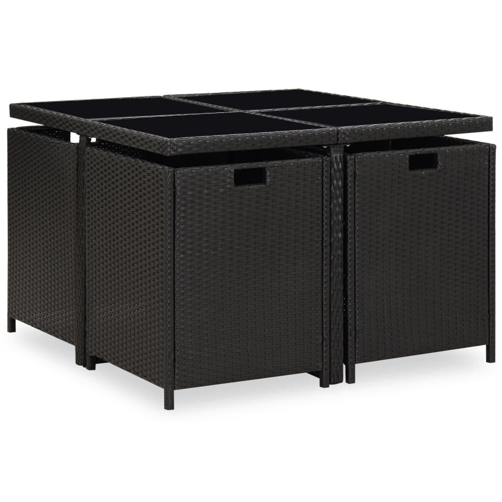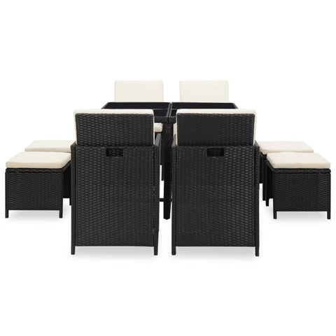 9 Piece Outdoor Dining Set with Cushions Poly Rattan Black 42597