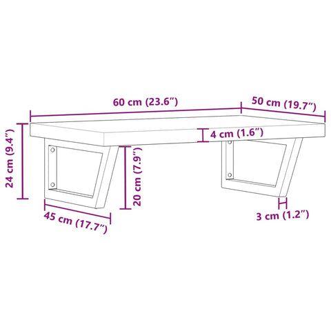 The wall mounted basin shelf securely attaches to the wall, providing an elegant and space-saving solution for your bathroom. Sturdy and long-lasting: This basin shelf is combined with a steel structure and a solid acacia wood top, making it sturdy, stable, and long-lasting.Space-saving: The floating basin shelf has ample space to store creams and small items. Thanks to the trapezium shape, you can hang towels or other things on the support to save space.Easy to use: The countertop comes undrilled to allow the basin to be mounted on the left, right, or in the centre, depending on your room's requirements. Thanks to the pre-drilled holes in the holder, it can be easily assembled with the tabletop and mounted on the wall.Wide applications: Thanks to its modern design, it provides additional space for various types of bathrooms. Good to know:Screws are not included, you can purchase the screws separately based on the information provided below.Wall attachment: 2 pcs M8 expansion screws per bracketWooden top: 2 pcs M5x18 screws (T=2) or 2 pcs M5x20 screws (T=2,5/4cm) per bracket