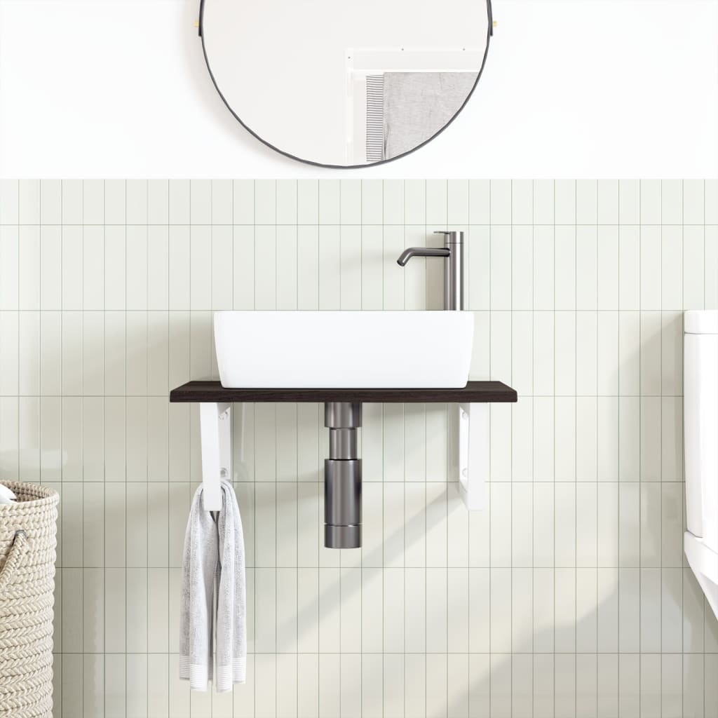 Basin Shelf Wall Mounted Steel and Solid Wood Oak 3302618