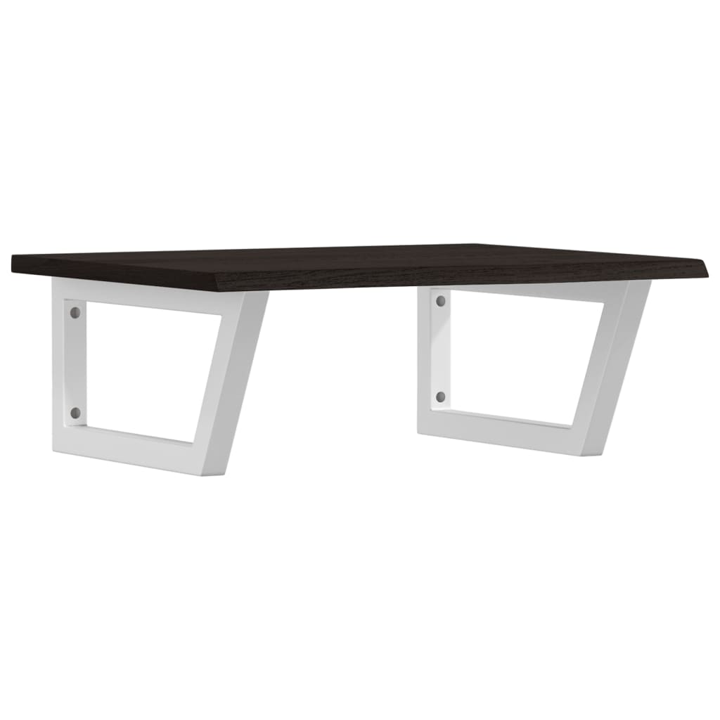 The wall mounted basin shelf securely attaches to the wall, providing an elegant and space-saving solution for your bathroom. Sturdy and long-lasting: This basin shelf is combined with a steel structure and a solid oak wood top, making it sturdy, stable, and long-lasting.Space-saving: The floating basin shelf has ample space to store creams and small items. Thanks to the trapezium shape, you can hang towels or other things on the support to save space.Easy to use: The countertop comes undrilled to allow the basin to be mounted on the left, right, or in the centre, depending on your room's requirements. Thanks to the pre-drilled holes in the holder, it can be easily assembled with the tabletop and mounted on the wall.Wide applications: Thanks to its modern design, it provides additional space for various types of bathrooms. Good to know:Screws are not included, you can purchase the screws separately based on the information provided below.Wall attachment: 2 pcs M8 expansion screws per bracketWooden top: 2 pcs M5x18 screws (T=2) or 2 pcs M5x20 screws (T=2,5/4cm) per bracketAs a natural product, wood may show knots and imperfections that we fill with black fillings to ensure a smooth appearance.