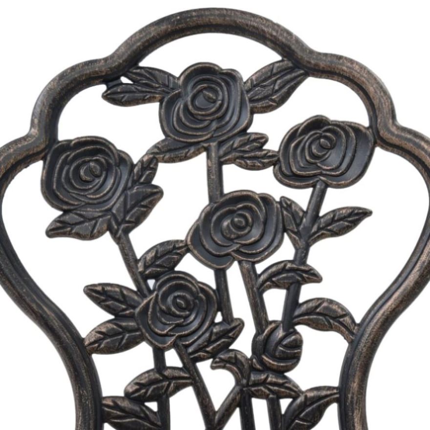 This set of bistro chairs will make a decorative addition to your garden, patio, or balcony with their ornate floral details. It will be a pleasure to have a cuppa with your friends sitting on these chairs! The bistro set is made of cast aluminium, which is weather-resistant and highly durable. The cast iron legs add to the sturdiness of the set. The detailed floral pattern will add a romantic touch to any garden, patio or conservatory. Delivery includes 2 bistro chairs.