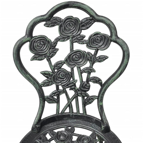 This set of bistro chairs will make a decorative addition to your garden, patio, or balcony with their ornate floral details. It will be a pleasure to have a cuppa with your friends sitting on these chairs! The bistro set is made of high-quality cast aluminium, which is weather-resistant and highly durable. The cast iron legs add to the sturdiness of the set. The detailed floral pattern will add a romantic touch to any garden, patio or conservatory. Delivery includes 2 bistro chairs.
