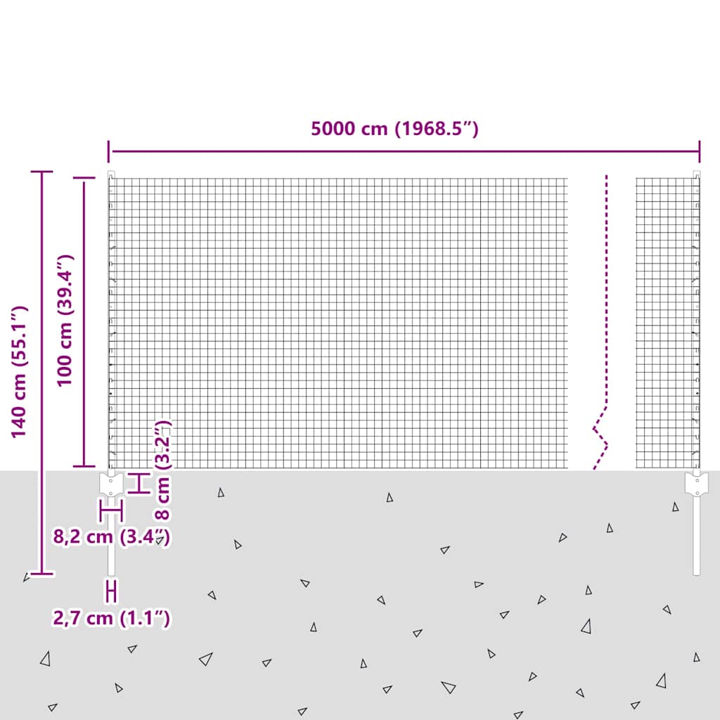 - Overall dimensions: 5000 x 2.7 x 100 cm (L x W x H)
