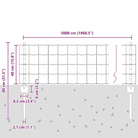 Fence and Post Grey 0.4 x 50 m Steel 3336127