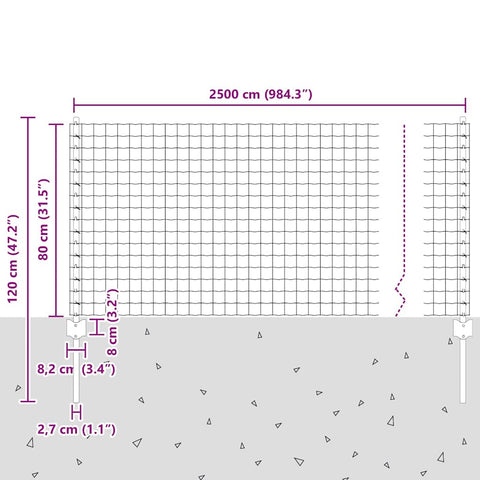 Fence and Post Grey 0.8 x 25 m Steel 3336096