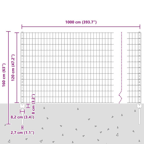 Fence and Post Grey 1.2 x 10 m Steel 3336074