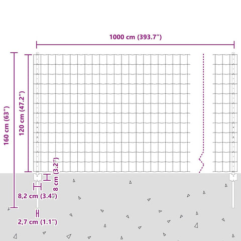 Fence and Post Grey 1.2 x 10 m Steel 3336082