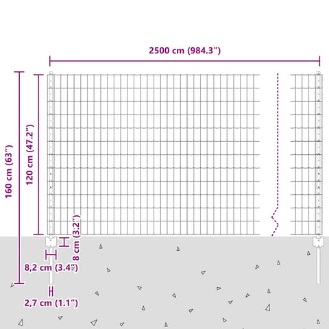 Fence and Post Grey 1.2 x 25 m Steel 3336108