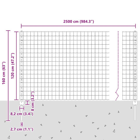 Fence and Post Grey 1.2 x 25 m Steel 3336141