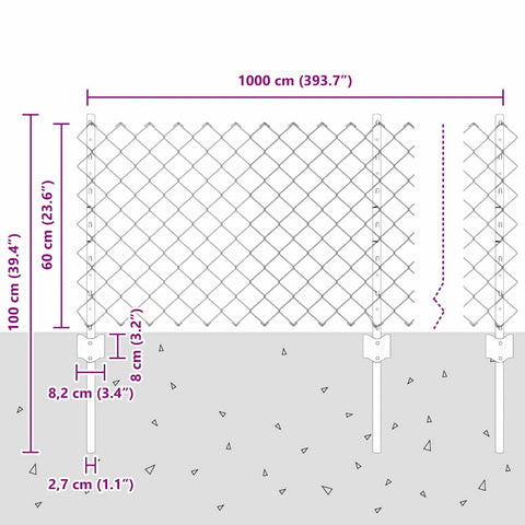 Fence and Post Silver 0.6 x 10 m Steel 3336294