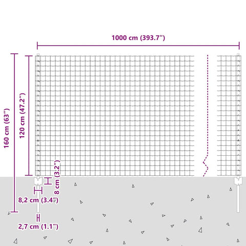 Fence and Post Silver 1.2 x 10 m Steel 3336148