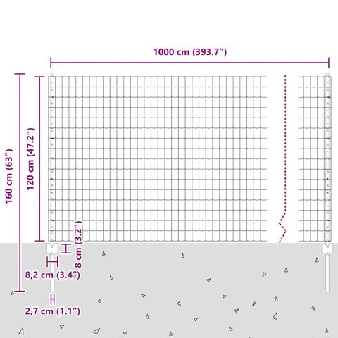 Fence and Post Silver 1.2 x 10 m Steel 3336156
