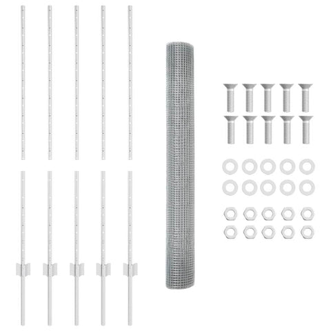 - 1 x Fence roll, 20 x Post, 1 x Set of screws and bolts