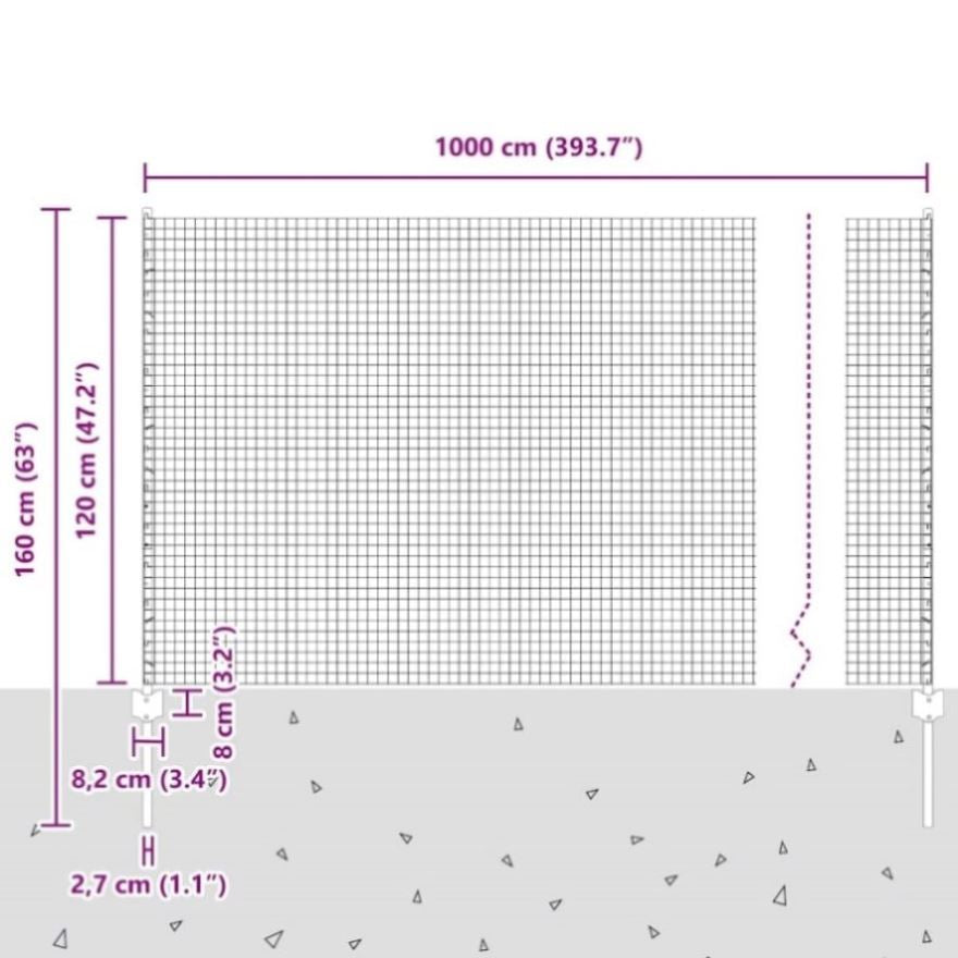 Fence and Post Silver 1.2 x 10 m Steel 3336332