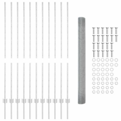 - 1 x Fence roll, 44 x Post, 1 x Set of screws and bolts