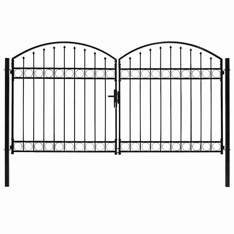 Fence Gate Double Door with Arched Top Steel 300x175 cm Black 146340