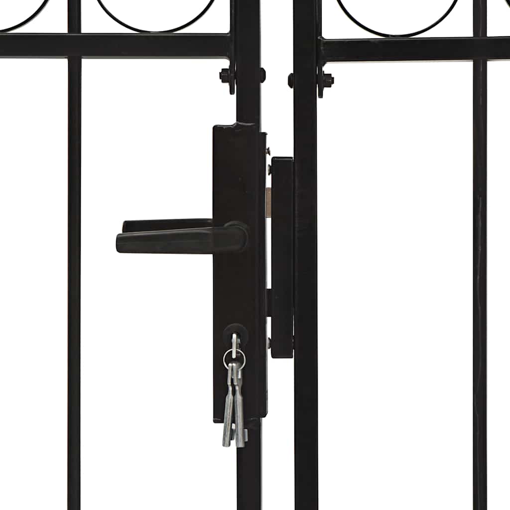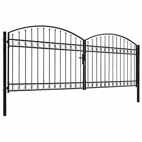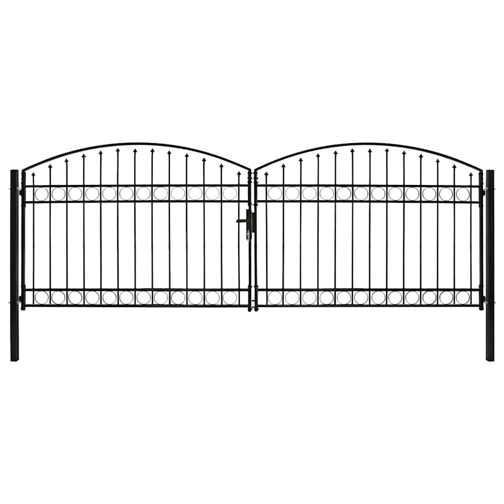 Fence Gate Double Door with Arched Top Steel 400x125 cm Black 143093
