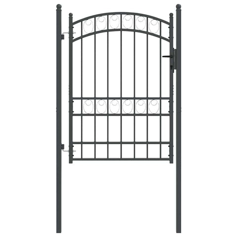 This modern Fence Gate crafted from powder-coated steel adds both security and aesthetic appeal to your outdoor space. Its arched top design and simple elegance make it a functional yet stylish addition to gardens or terraces. Suitable for use during spring and summer, it creates a charming gateway that can be used to define spaces or enhance the overall look of your outdoor area. Powder-Coated Steel: The fence gate features a robust, powder-coated steel construction that ensures longevity and resilience against outdoor elements. Its rust-resistant qualities make it well-suited for exposure to rain and humidity, maintaining its pristine appearance and strength season after season. Elegant Arched Top: The gate's design showcases a graceful arched top, adding an element of sophistication to both contemporary and traditional outdoor settings. This architectural feature not only enhances the visual interest of your outdoor space but also complements various garden designs. Included Components: Equip your outdoor area with a comprehensive package that includes a fence gate, two sturdy fence posts, reliable hinges, and three matching keys. These components work in harmony to ensure easy installation and reliable operation of the gate. Secure Deadbolt Locks: The gate is designed with strong deadbolt locks that provide a solid security measure for your property. These locks require a key for access, offering peace of mind and functionality in securing your garden or terrace. Care &Maintenance: Cleaning is simple and requires nothing more than a damp cloth to wipe down the gate, ensuring low maintenance and long-lasting satisfaction with its appearance. This straightforward upkeep guarantees your fence gate maintains its allure and effectiveness.
