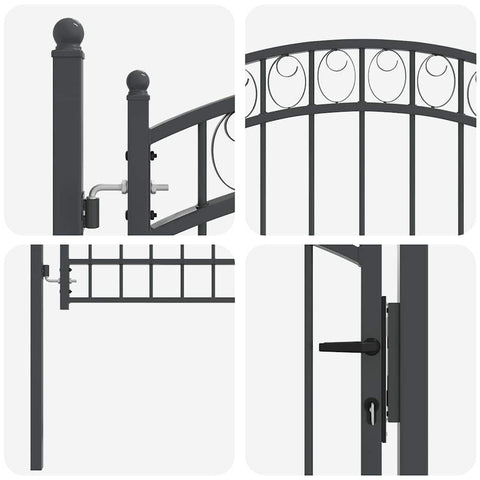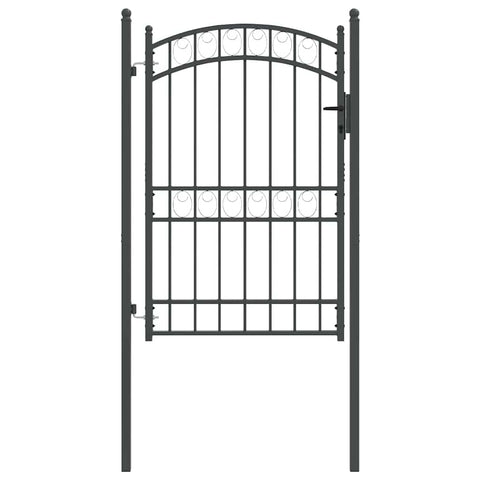 This modern Fence Gate crafted from powder-coated steel adds both security and aesthetic appeal to your outdoor space. Its arched top design and simple elegance make it a functional yet stylish addition to gardens or terraces. Suitable for use during spring and summer, it creates a charming gateway that can be used to define spaces or enhance the overall look of your outdoor area. Powder-Coated Steel: The fence gate features a robust, powder-coated steel construction that ensures longevity and resilience against outdoor elements. Its rust-resistant qualities make it well-suited for exposure to rain and humidity, maintaining its pristine appearance and strength season after season. Elegant Arched Top: The gate's design showcases a graceful arched top, adding an element of sophistication to both contemporary and traditional outdoor settings. This architectural feature not only enhances the visual interest of your outdoor space but also complements various garden designs. Included Components: Equip your outdoor area with a comprehensive package that includes a fence gate, two sturdy fence posts, reliable hinges, and three matching keys. These components work in harmony to ensure easy installation and reliable operation of the gate. Secure Deadbolt Locks: The gate is designed with strong deadbolt locks that provide a solid security measure for your property. These locks require a key for access, offering peace of mind and functionality in securing your garden or terrace. Care &Maintenance: Cleaning is simple and requires nothing more than a damp cloth to wipe down the gate, ensuring low maintenance and long-lasting satisfaction with its appearance. This straightforward upkeep guarantees your fence gate maintains its allure and effectiveness.