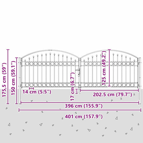 Fence gate with Lock Grey 400 x 125 cm Steel 42008942