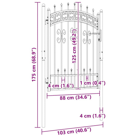 This high-quality, stylish fence gate is powder-coated to protect against rust and corrosion, which makes it an ideal entry point for the fence around your garden or patio. Durable material: Manufactured from powder-coated steel, the garden gate is exceedingly stable, sturdy, and durable.High-security design: The gate provides a high degree of security with its elegant, arched top design and strong horizontal braces to reinforce the frame while forming a stunning entryway to your property.Quick locking: A heavy-duty locking system with 3 matching keys ensures extra security and safety for your yard. Note:Each product comes with an assembly manual in the box for easy assembly.