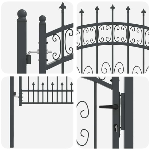 Fence Gate with Spear Top with Lock Grey 103 x 100 cm Steel 42009038