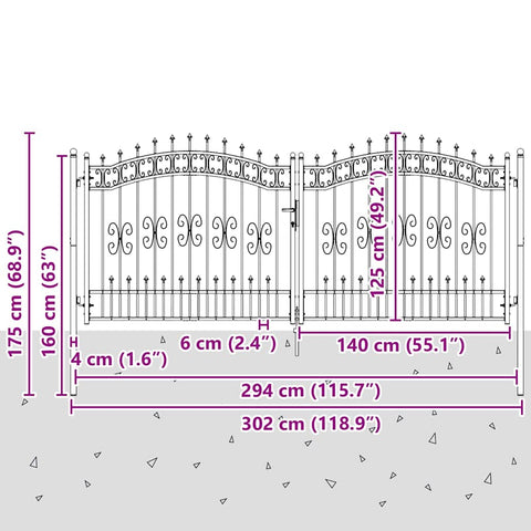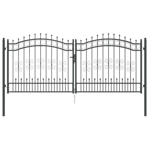 Fence Gate with Spear Top with Lock Grey 305 x 125 cm Steel 42009044