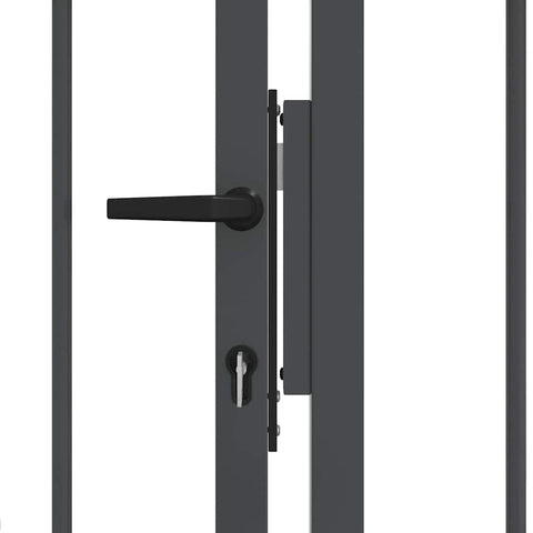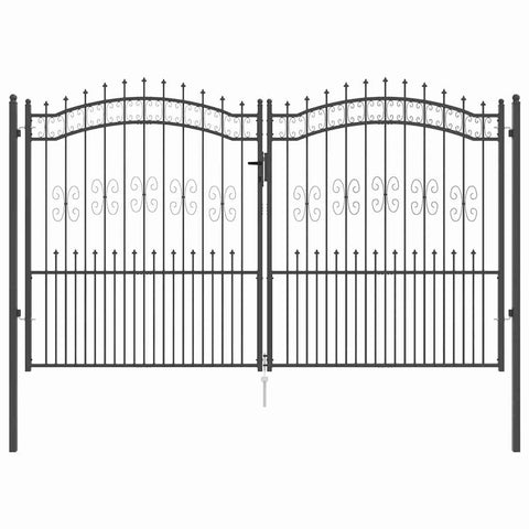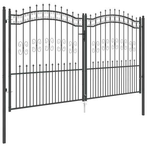 Fence Gate with Spear Top with Lock Grey 305 x 175 cm Steel 42009046