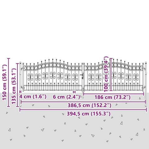 Fence Gate with Spear Top with Lock Grey 404 x 100 cm Steel 42009048