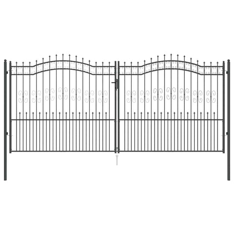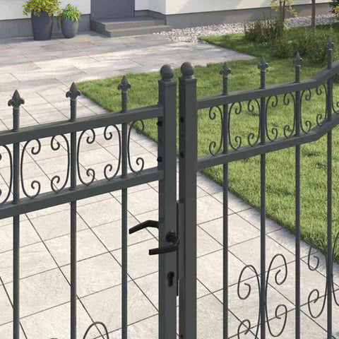 Fence Gate with Spear Top with Lock Grey 404 x 175 cm Steel 42009051