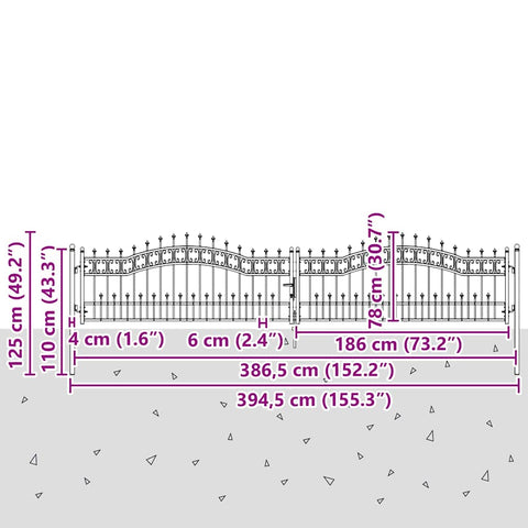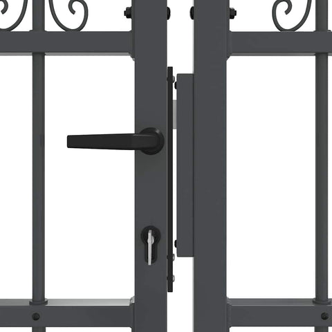 Fence Gate with Spear Top with Lock Grey 404 x 75 cm Steel 42009047