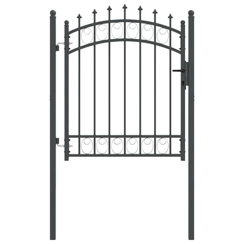This elegant fence gate adds both functionality and modern aesthetics to any outdoor space. Tailor-made for garden and terrace areas, it combines a timeless design with security. Constructed from durable powder-coated steel, this Rectangular gate is not only robust and weather-resistant but also aesthetically pleasing, enhancing the overall look of your premises. The arched top design with its sleek spikes provides a statement of style, while maintaining the necessary safety and division in your garden. Powder-Coated Steel: Built with high-quality powder-coated steel, the gate withstands various weather conditions, ensuring longevity and minimal maintenance. The durable finish prevents ,bumps, or scratches, making it perfect for continuous outdoor exposure. Secure Deadbolt Locks: Featuring deadbolt locks, this gate offers heightened security, ensuring your garden remains safe from unwanted access. The locks are robust, requiring a key for operation, which gives you peace of mind in knowing your outdoor space is secured. Arched Top Design: The elegant arched top enhances your garden’s visual appeal. This design, coupled with decorative spikes, adds a modern touch to any landscape, creating an inviting entrance that is both functional and stylish. Complete Set: Delivered with everything needed, including two sturdy posts, strong hinges, and three matching keys. This complete set simplifies assembly and assures stability upon installation, allowing you to achieve the finish you desire quickly and effectively. Care &Maintenance: Easy to maintain, this gate only requires an occasional wipe with a damp cloth, keeping it looking pristine and fresh, without the need for rigorous care routines. Such low maintenance supports long-lasting aesthetics and function.