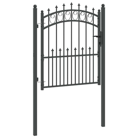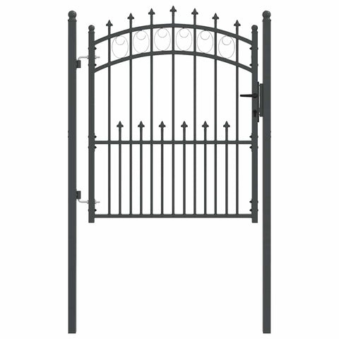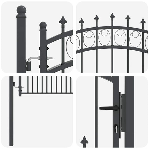 This fence gate with spikes embodies modern simplicity, featuring a sleek, powder-coated steel structure characterized by clean lines and minimal ornamentation. Designed explicitly for outdoor settings such as gardens and terraces, it offers an impressive combination of style and practicality. Its arched top design adds a touch of elegance, making it not just a piece of functional hardware, but also an aesthetically appealing feature for outdoor spaces. The robust construction ensures reliable performance in various weather conditions while offering a secure boundary solution. Powder-Coated Steel: The gate is made from high-quality powder-coated steel, recognized for its long-lasting durability and resilience against outdoor elements. This finish not only provides an extra layer of protection against and but also ensures the gate maintains its visual appeal over time. The robustness of the material means less maintenance, making it ideal for those who seek both beauty and practicality in an outdoor gate. Included Components: Complete with two fence posts and sturdy hinges for easy installation, this gate comes equipped with three matching keys. The components have been carefully chosen to ensure secure and reliable operation, giving peace of mind whether for personal residences or more community-focused settings. The seamless integration of these components underscores the gate's overall functional design. Stylish Arched Design: Featuring an elegant arched top and decorative spikes, this gate complements a wide array of garden styles. The design mimics classic elegance while providing a modern twist, enhancing the aesthetic value of any outdoor area. It seamlessly blends into the natural beauty of garden settings, turning a simple barrier into a stylish accent. Outdoor Versatility: Perfectly suited for gardens and terraced spaces, the gate's design offers both privacy and delineation of spaces. Its modern look seamlessly integrates with contemporary outdoor environments, making it a versatile addition that suits various landscape designs. It creates a welcoming entrance while maintaining the privacy you desire. Assembly and Maintenance: Assembly requires two individuals and a screwdriver for quick setup. The components ensure stability and safety once installed. For maintenance, regular checks of hinges and bolts are recommended to ensure longevity. Cleaning the surface with a mild detergent and water will keep the gate looking as good as new while extending its operational life.